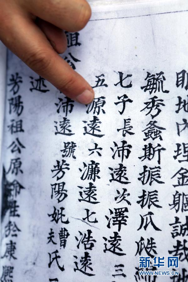 Researchers find one of the sponsors’ name from a family tree book on June 18, 2014. (Photo/ Luo Guojia)