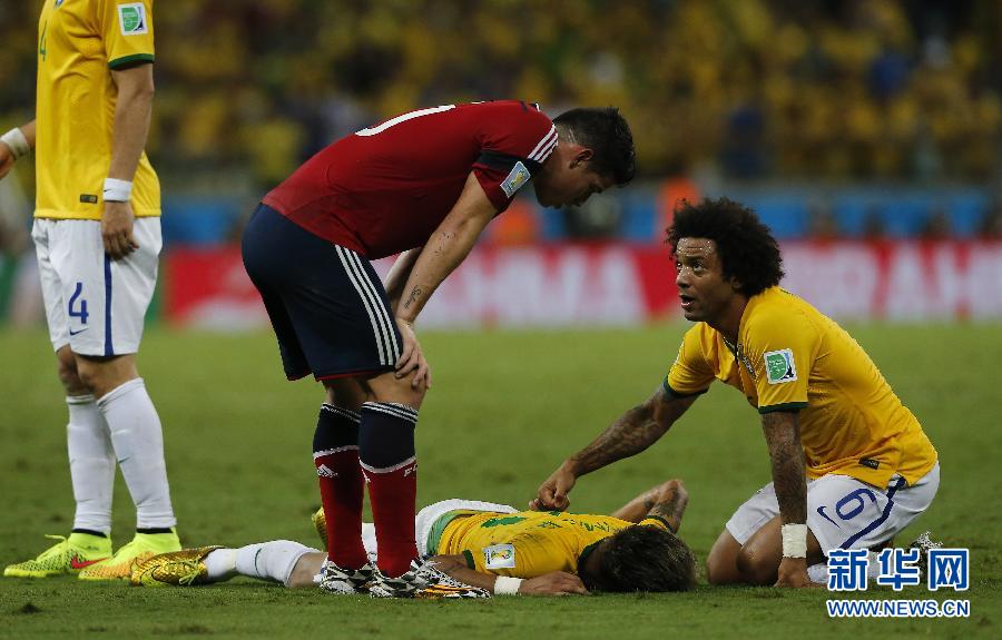 Brazil have suffered a huge setback as team doctor confirmed star man Neymar suffered a broken vertebra and is out of the World Cup after he was stretchered off during the quarterfinal defeat of Colombia. (Photo/Xinhua)