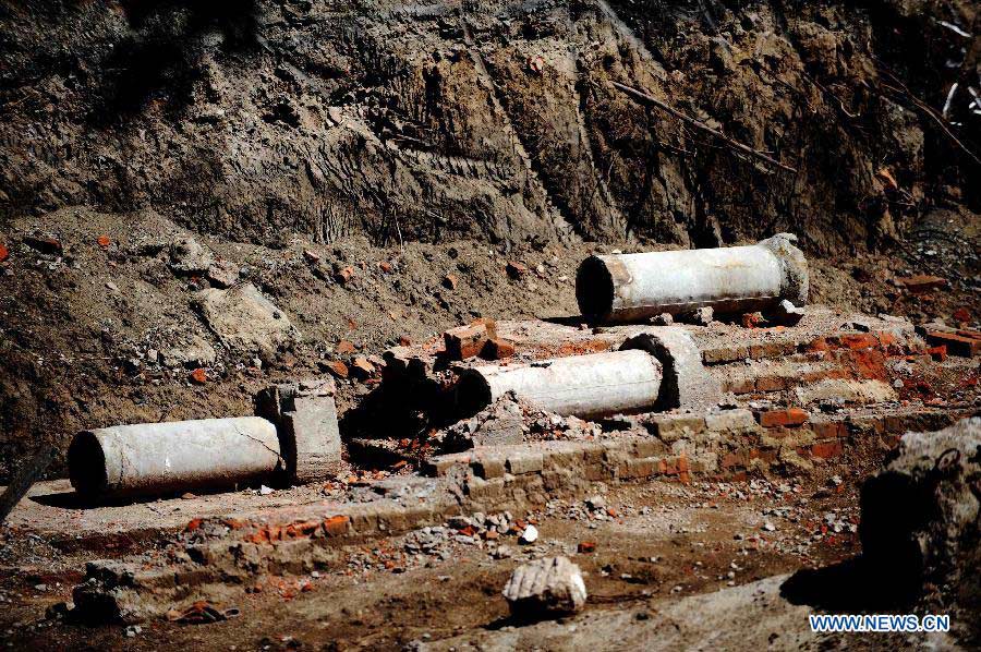 Photo taken on July 7, 2014 shows the core area of the site of the Japanese Unit 731 troop, which is under a clearing process, in Harbin, capital of northeast China's Heilongjiang Province. Unit 731 was a biological and chemical warfare troop set up in China by the Japanese invaders during World War II. The clearing process in the Unit 731 site's core area, which consists of a bacteria lab and a prison used to keep people for biological experiments, will be finished by October 2014 and open to the public around the 70th anniversary of China's victory in World War II and the Chinese People's War of Resistance Against Japanese Aggressions in 2015. (Xinhua/Wang Jianwei)