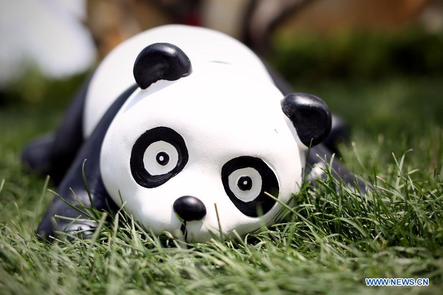 A panda figure is displayed during the open-air show "1st Panda" in Shenyang, capital of northeast China's Liaoning Province, July 7, 2014. A hundred panda figures made from bamboo scraps are shown during the event, which aims at promoting environmental awareness. (Xinhua/Yao Jianfeng)