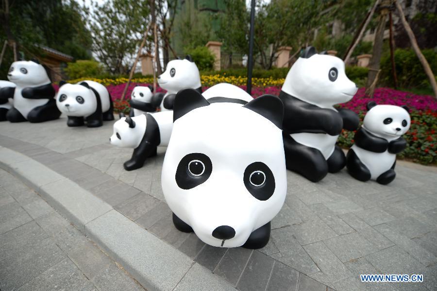Panda figures are displayed during the open-air show "1st Panda" in Shenyang, capital of northeast China's Liaoning Province, July 7, 2014. A hundred panda figures made from bamboo scraps are shown during the event, which aims at promoting environmental awareness. (Xinhua/Pan Yulong)