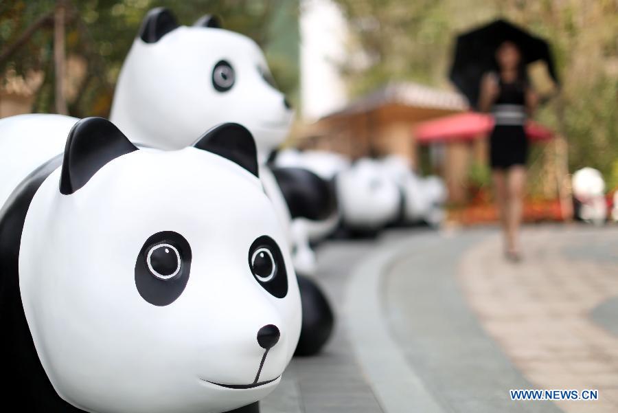 Panda figures are displayed during the open-air show "1st Panda" in Shenyang, capital of northeast China's Liaoning Province, July 7, 2014. A hundred panda figures made from bamboo scraps are shown during the event, which aims at promoting environmental awareness. (Xinhua/Yao Jianfeng)