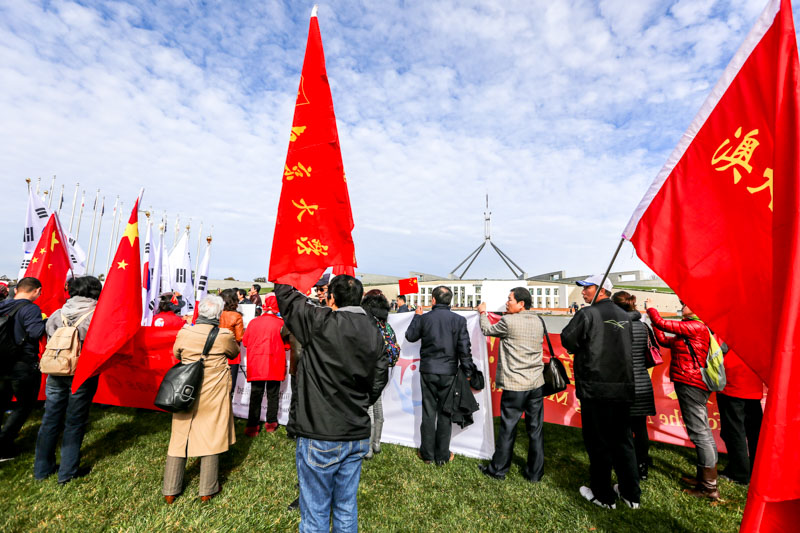 Protesters from Sydney and Canberra’s Chinese and Korean Communities outside the Parliament House in Canberra_ Australia (People's Daily Online/Li Yiming)