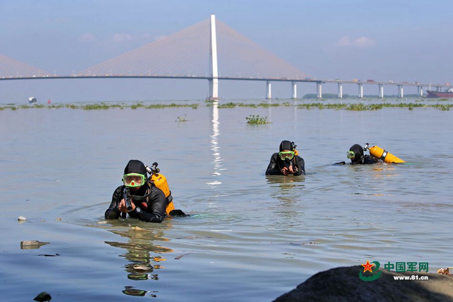 Frogman team in PLA's Guangzhou MAC carries out a combat training underwater in unknown sea on July 4, 2014. (Photo/Yu Chen)