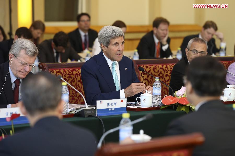 U.S. Secretary of State John Kerry (C) speaks during the strategic dialogue of the sixth round of the China-U.S. Strategic and Economic Dialogue (S&ED) in Beijing, capital of China, July 10, 2014. (Xinhua/Pang Xinglei)