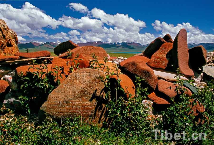 Stones with the six syllable Mantra are called holy stones, which could be seen everywhere in Tibet. The stones express prays for blessings. (Tibet.cn/ Wang Bingning)