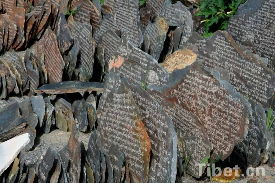 Stones with the six syllable Mantra are called holy stones, which could be seen everywhere in Tibet. The stones express prays for blessings. (Tibet.cn/ Xiao Guangquan)