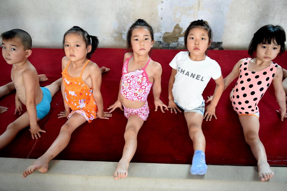 Children receive training under the guidance of the coach during the summer vacation in Bozhou City, east China's Anhui Province, July 9, 2013. Some parents sent their children to receive gymnastics training in summer, hoping that the children will have a better physical condition and a rich vacation life. (Photo/CNS)
