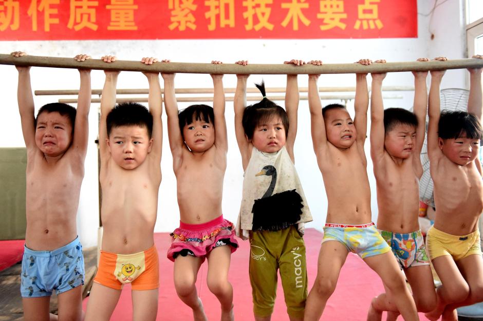 Children receive training under the guidance of the coach during the summer vacation in Bozhou City, east China's Anhui Province, July 9, 2013. Some parents sent their children to receive gymnastics training in summer, hoping that the children will have a better physical condition and a rich vacation life. (Photo/CNS)