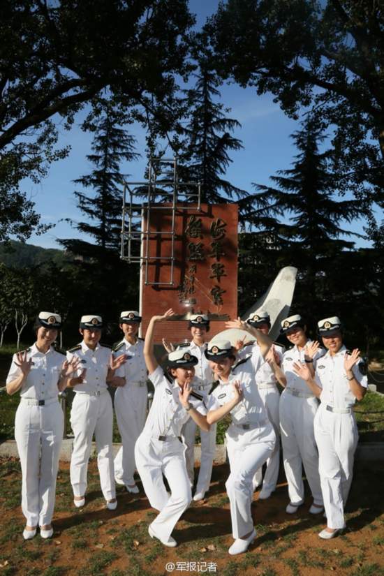 The first three female Uyghur students from Xinjiang Uyghur Autonomous Region have been studying at PLA Dalian Naval Academy for a year until this July. (Photo/Chinamil.com.cn)