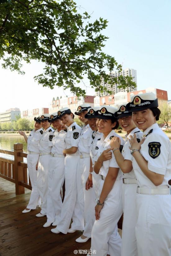 The first three female Uyghur students from Xinjiang Uyghur Autonomous Region have been studying at PLA Dalian Naval Academy for a year until this July. (Photo/Chinamil.com.cn)