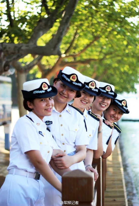 | The first three female Uyghur students from Xinjiang Uyghur Autonomous Region have been studying at PLA Dalian Naval Academy for a year until this July. (Photo/Chinamil.com.cn) |