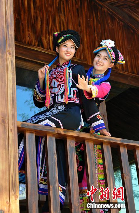 On July 12, 2014, the national fitness team members dressed in the traditional costumes of Qiang girls show both traditional and modern beauty in the run-up to Hong Kong Federation of Bodybuilding and Fitness (HKFBF) International Bodybuilding and Fitness Invitation Championship. (Chinanews.com/ An Yuan)