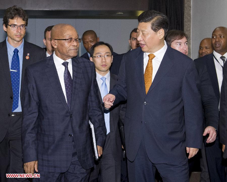 Chinese President Xi Jinping (R, front) meets with South African President Jacob Zuma (L, front) in Fortaleza, Brazil, July 14, 2014. (Xinhua/Wang Ye)