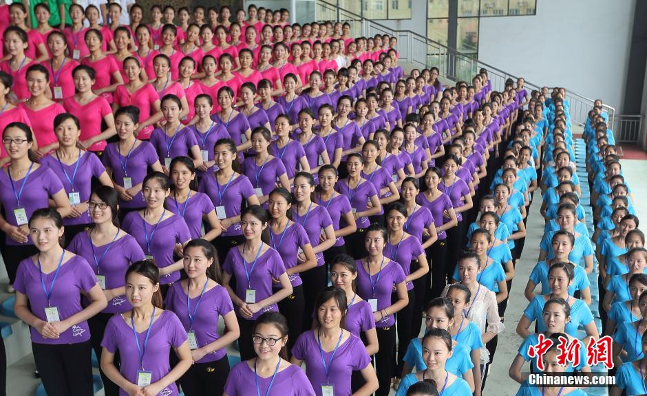 Volunteers for the 2014 Nanjing Youth Olympic Games pose for a group photo on July 13, 2014. On July 13, 491 ceremony volunteers for the 2014 Nanjing Youth Olympic Games make public appearance. All of them are from 18 colleges including Southeast University, Nanjing Agriculture University and Nanjing Sport Institute. (CNS/Yang Bo)