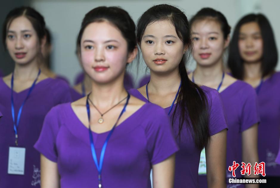Volunteers for the 2014 Nanjing Youth Olympic Games receive training on July 13, 2014. On July 13, 491 ceremony volunteers for the 2014 Nanjing Youth Olympic Games make public appearance. All of them are from 18 colleges including Southeast University, Nanjing Agriculture University and Nanjing Sport Institute. (CNS/Yang Bo)