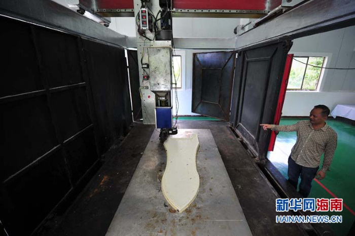 A 2-meter-long boat made of nylon resin material is printed. (Xinhua/Guo Cheng)