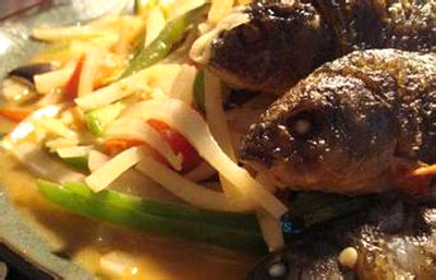 The dish Fish Braised with Sour Bamboo Shoot is a popular dish in the Pu'er Prefecture and tastes sour, spicy, fresh, and pleasing to the mouth.
