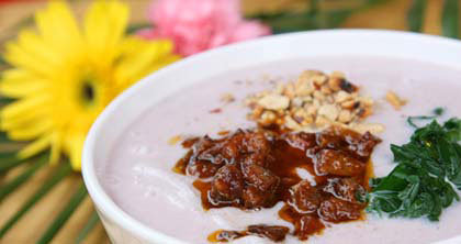 In Pu'er, what people refer to as "mi gan" (or Glutinous Rice Flour Rolls) in Chinese is called "juan fen" in Kunming and "chang fen" in Guangdong. The delicacy is sold while hot from the steamer. The Soybean Soup Glutinous Rice Flour Rolls sold in Pu'er County in the Simao Prefecture is well-known far and wide, because it perfectly suits both vegetarians and slightly fat people. It tastes soft and delicious and is acclaimed in the Southeast Asian countries. It is a delicacy of which whoever happens to go to Pu'er on business or for fun should have some.
