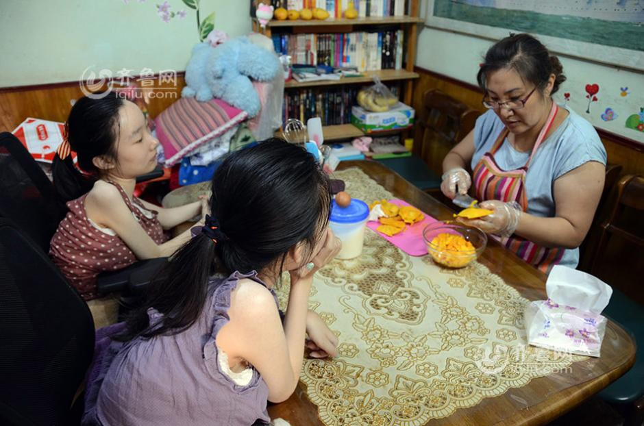 Zhao Wenjing and Zhao Yajing's mother prepares to make cheese cakes. (iqilu.com/Sun Zhiwen)