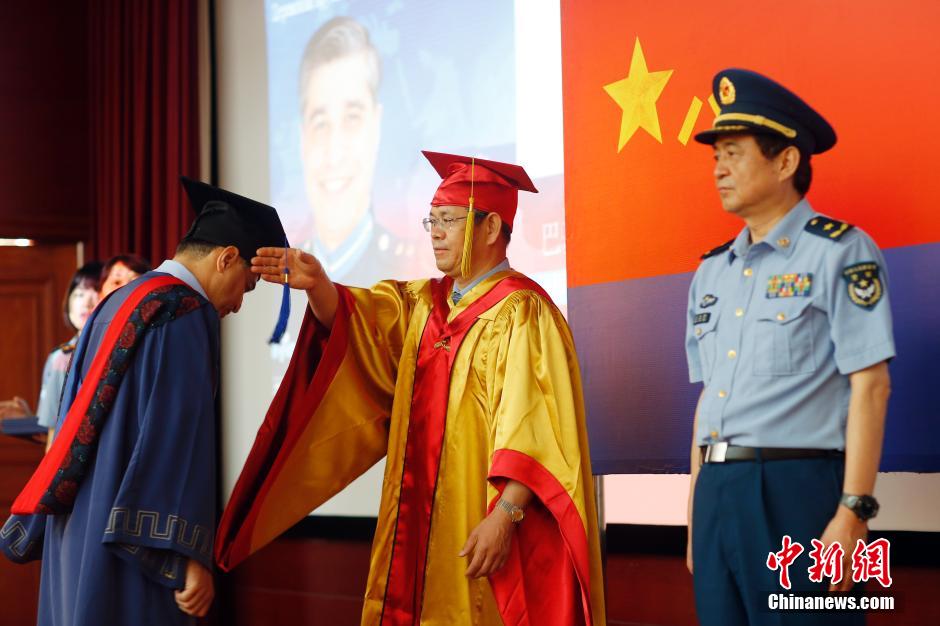 20 foreign military cadets from 16 countries are awarded master’s degree from the PLA Air Force Command College in Beijing July 15, 2014. (Photo/Chinanews.com)