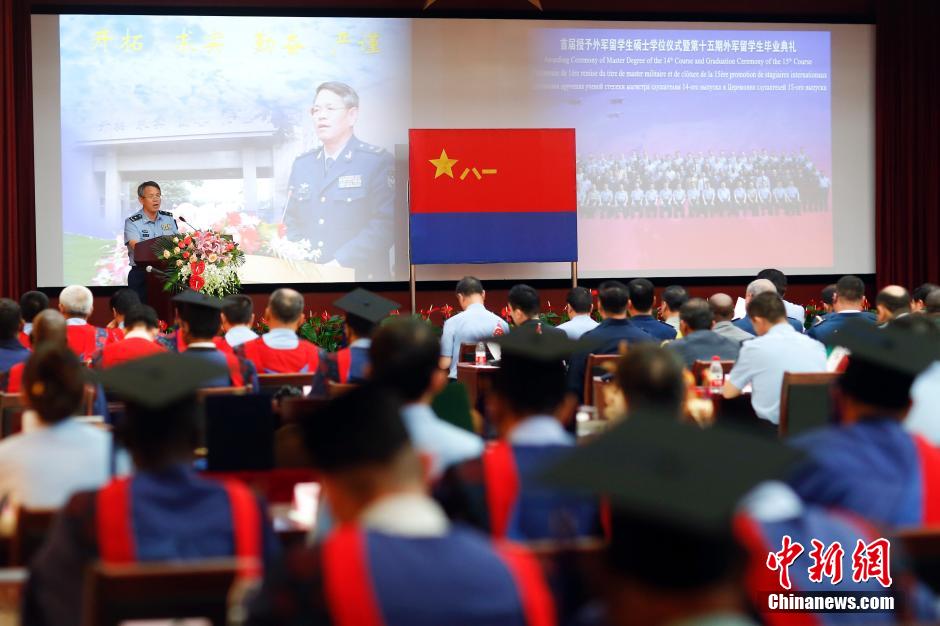20 foreign military cadets from 16 countries are awarded master’s degree from the PLA Air Force Command College in Beijing July 15, 2014. (Photo/Chinanews.com)