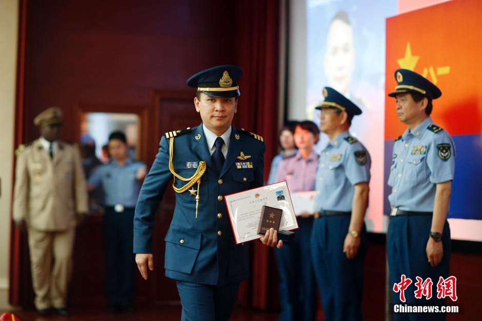 20 foreign military cadets from 16 countries are awarded master’s degree from the PLA Air Force Command College in Beijing July 15, 2014. (Photo/Chinanews.com)