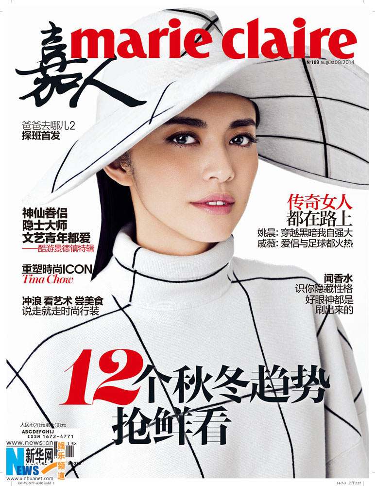 Chinese actress Yao Chen covers for Marie Claire. (Source: Xinhuanet.com/ent)