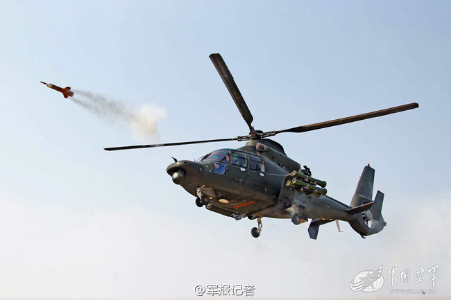 PLA’s armed helicopters open fire during combat drills. (Photo source:chinamil.com.cn)