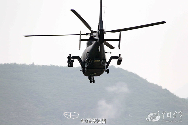 PLA’s armed helicopters open fire during combat drills. (Photo source:chinamil.com.cn)