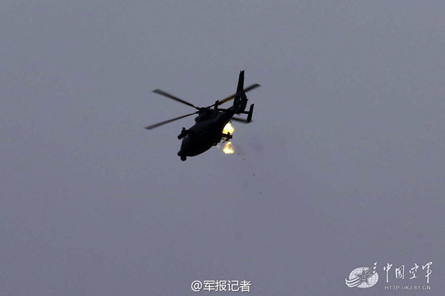 PLA’s armed helicopters open fire during combat drills. (Photo source:chinamil.com.cn)