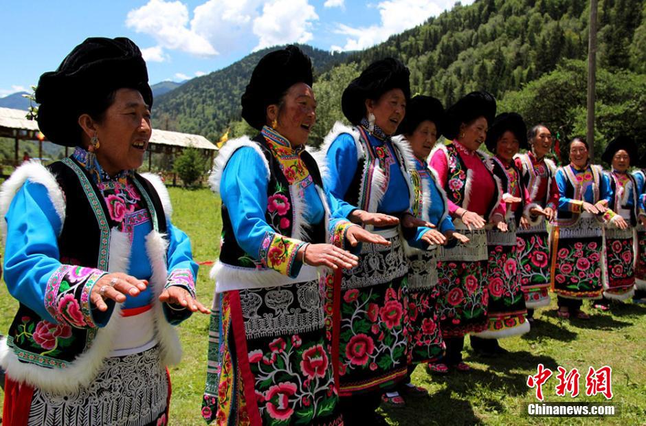 Qiang people hold a solemn ceremony of mountain offer on June 6 of the lunar calendar, praying for good weather and thanking God for blessing respectively in Mao county, Sichuan. The sacrifice event will last till June 27 in lunar calendar. (CNS/ He Qinghai)
