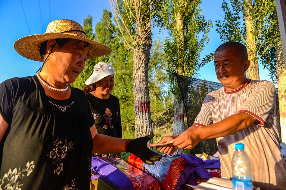 Farmers get paid by the owner of the lavender field. (Photo/Xinhua)