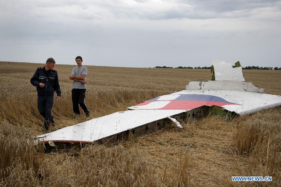 Rescuers work at the crash site of MH17 of Malaysian Airlines near the city of Shakhtarsk in Ukraine's Donetsk region, July 18, 2014. Malaysian Transport Minister Liow Tiong Lai said Friday that according to the International Civil Aviation Organization's Annex 13, the Ukrainian government should institute an investigation into the circumstances of the deadly MH17 incident, and be responsible for the conduct of the investigation. (Xinhua/Alexander Ermochenko)
