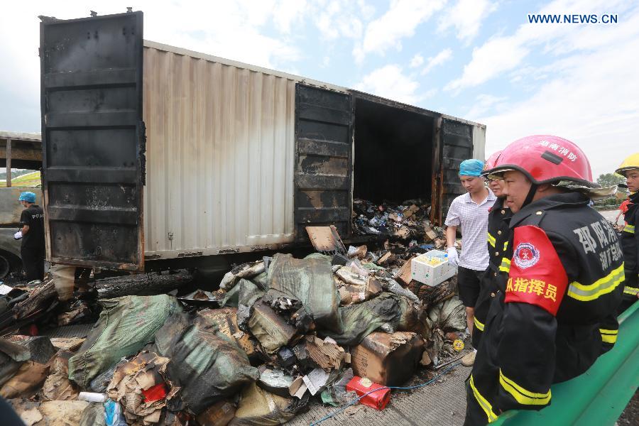 CHANGSHA, July 19 -- At least 38 people are confirmed dead and another five injured after a vehicle crash triggered fire and explosion on a central China highway early Saturday morning, police said.