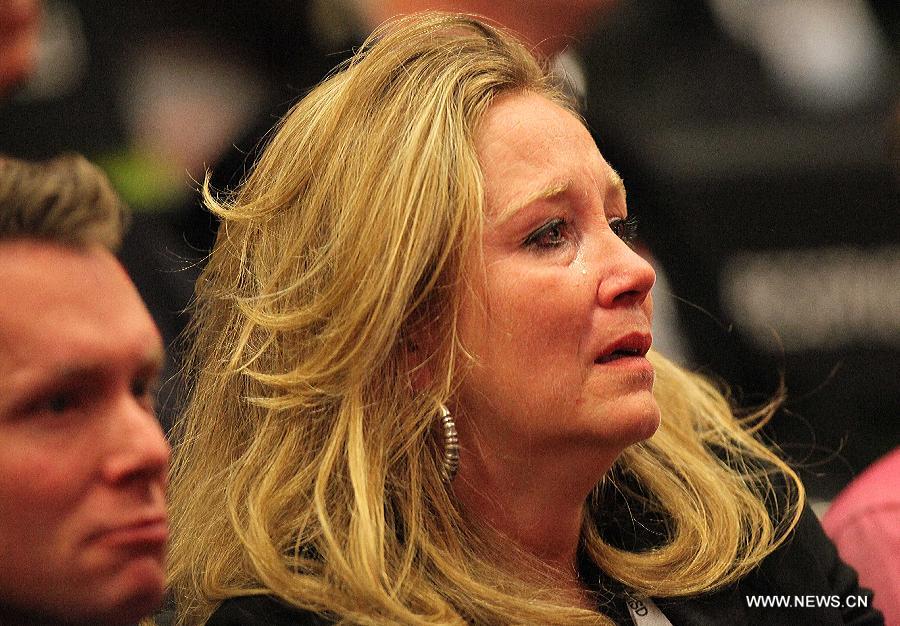 A conventioner reacts at a silent tribute during the opening of the 20th International AIDS Conference at the Melbourne Convention and Exhibition Centre (MCEC) in Melbourne, Australia, on July 20, 2014. At least six delegates heading for Melbourne to join the 20th international AIDS conference were killed in the crash of Malaysian flight MH17. (Xinhua/Xu Yanyan)