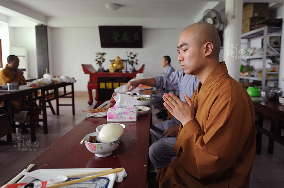 The monks have lunch. (Photo/Iqilu.com)