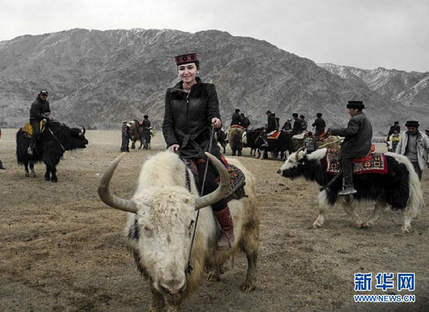 Dilreba Yaqup rides a yak in Taxkorgan Tajik autonomous county. (Photo/Xinhua)
