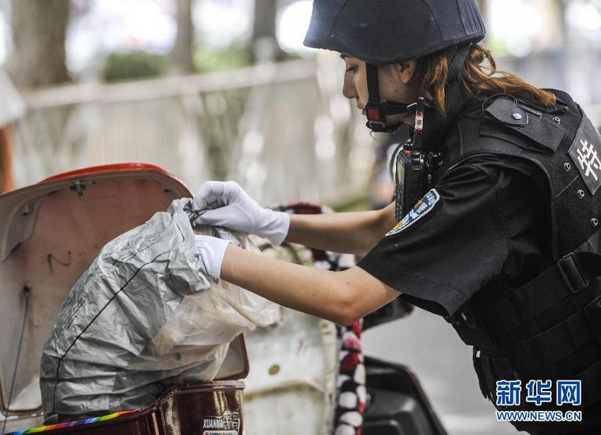 Dilreba Yaqup checks suspicious packages. (Photo/Xinhua)