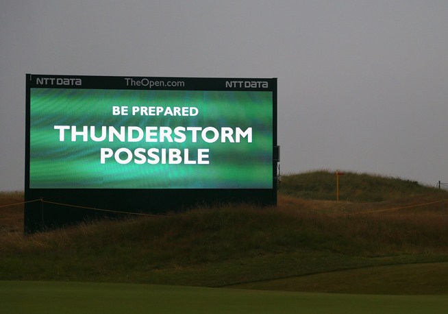 The reason was the weather, and the R&A's determination to ensure that Round Three was completed on Saturday. Thunderstorms were predicted during the day, and the organisers wanted to leave plenty of margin in case it was necessary to suspend play. In fact, although there was plenty of rain the thunder stayed away, with the result that play for the day was completed at 16.00 – another one-off. Normally play would continue until around 19.00 or later.