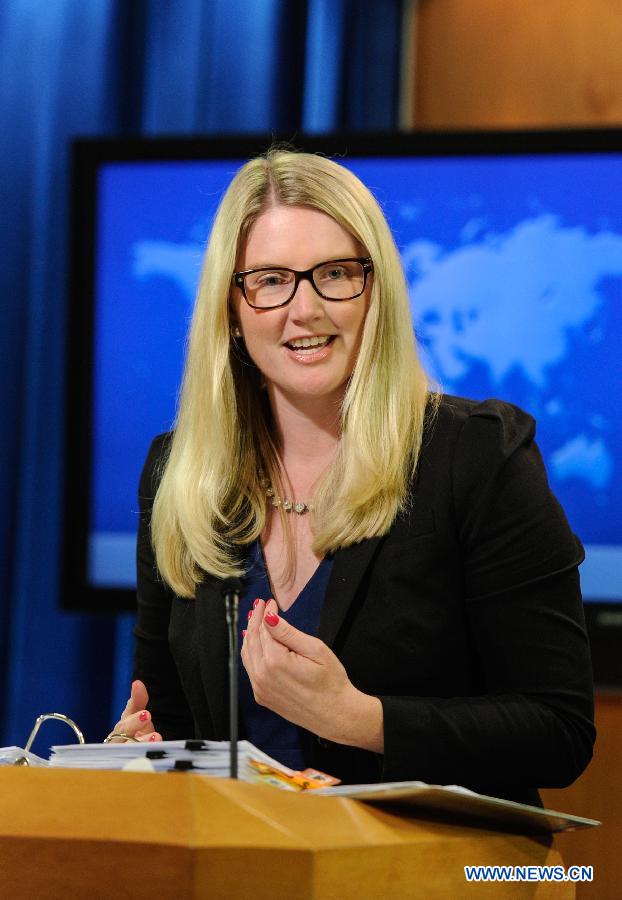 U.S. State Department spokeswoman Marie Harf speaks during daily press briefing in Washington D.C., capital of the United States, July 21, 2014. U.S. President Barack Obama on Monday called for a full, unimpeded and transparent investigation into the crash of Malaysian airliner MH17 in Ukraine. (Xinhua/Bao Dandan)