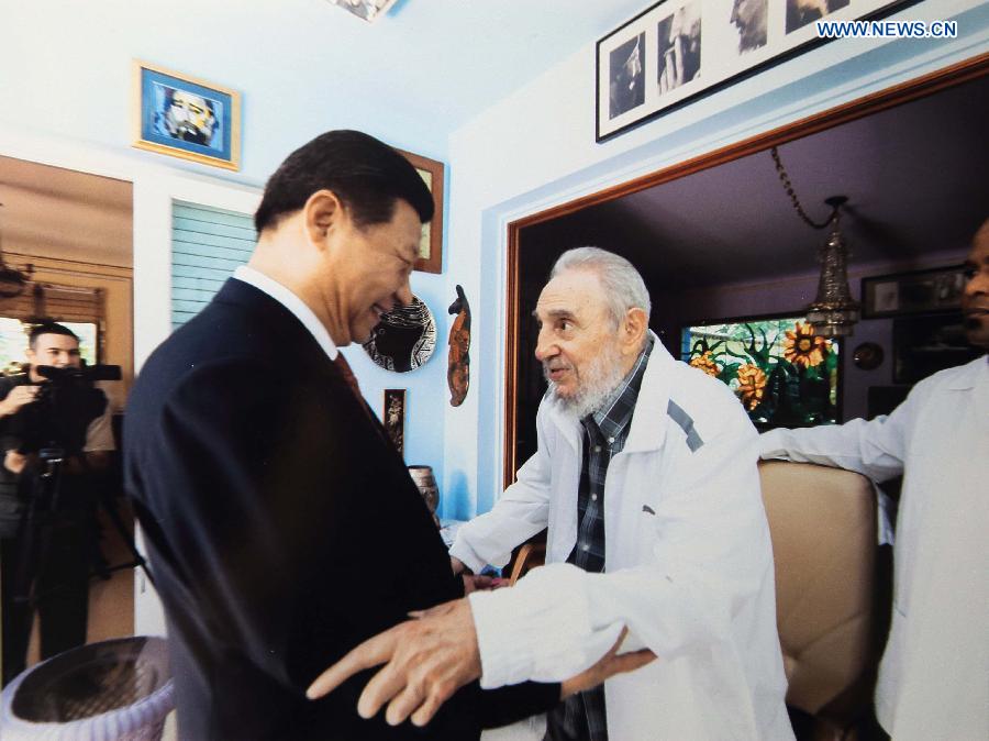 Chinese President Xi Jinping (L) visits Cuban revolution leader Fidel Castro in Havana, capital of Cuba, July 22, 2014. (Xinhua)