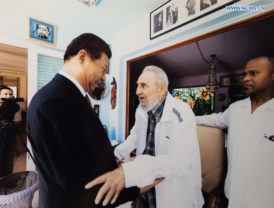 Chinese President Xi Jinping (L) visits Cuban revolution leader Fidel Castro in Havana, capital of Cuba, July 22, 2014. (Xinhua)
