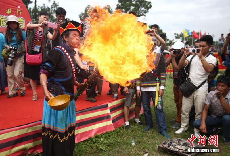 People celebrate Torch Festival on July 20, 2014. Torch Festival, a traditional carnival for the Yi ethnic group, is held annually on June 24 or 25 of the lunar calendar. (CNS Photo)