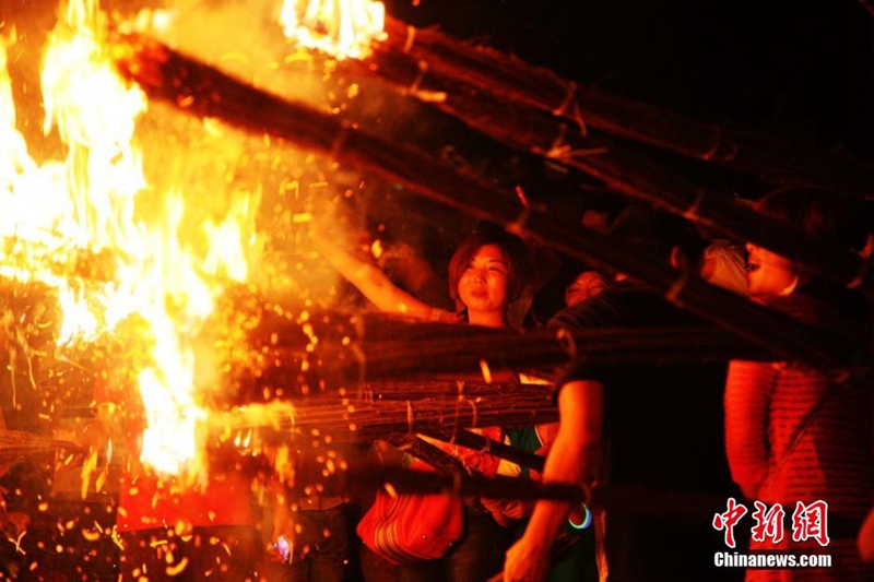 People celebrate Torch Festival on July 20, 2014. Torch Festival, a traditional carnival for the Yi ethnic group, is held annually on June 24 or 25 of the lunar calendar. (CNS Photo)