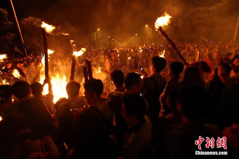 People celebrate Torch Festival on July 20, 2014. Torch Festival, a traditional carnival for the Yi ethnic group, is held annually on June 24 or 25 of the lunar calendar. (CNS Photo)