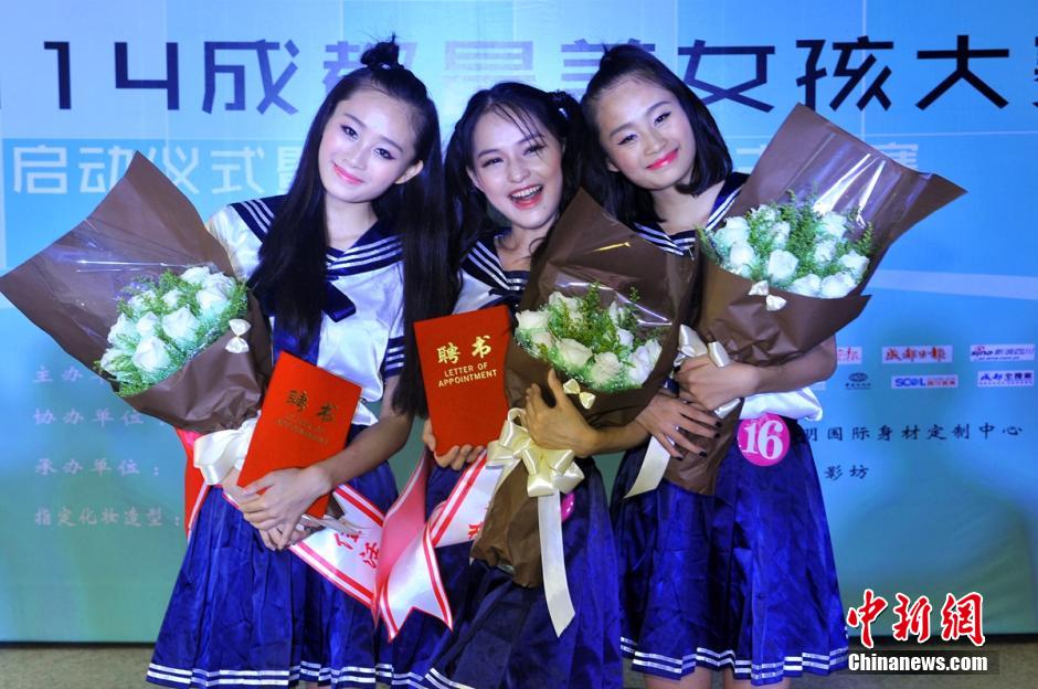 Three girls are awarded in the first themed competition of the contest. (Chinanews.com/Liu Zhongjun)