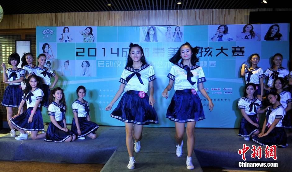 Girls show at the 2014 Miss Chengdu Contest. (Chinanews.com/Liu Zhongjun)