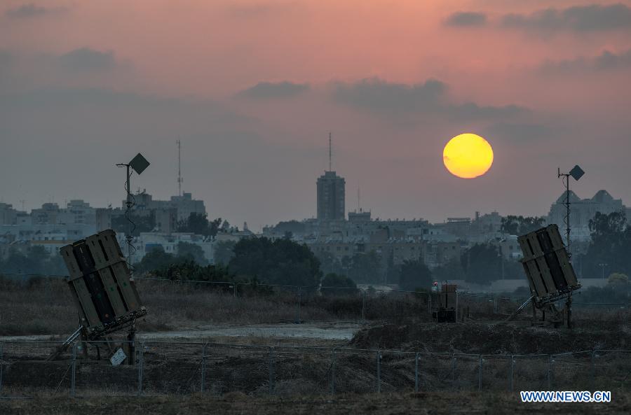Iron Dome anti-missile shield systems are deployed near Ashdod, a southern Israeli city bordering the Gaza Strip on July 22, 2014, the 15th day of Operation Protective Edge. As UN Secretary-General Ban Ki-moon is in Israel to broker a peace between the Jewish state and the Islamist Hamas movement, Israel army said it has no intention to cease its Gaza offensive before rooting out the "terror tunnels" that Hamas is using to sneak into Israel. (Xinhua/Li Rui)