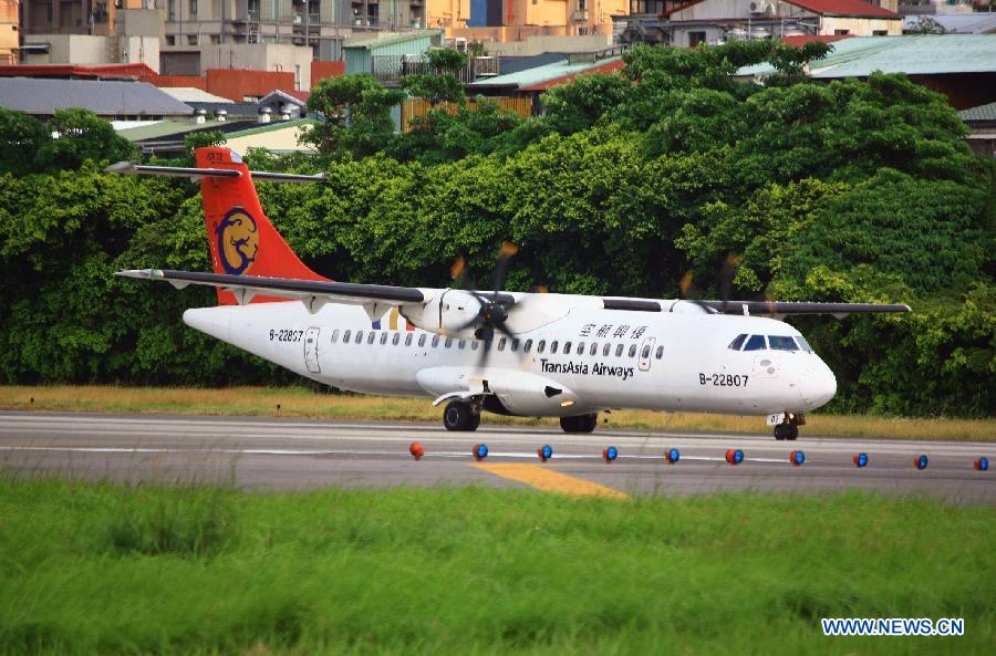 This file photo taken in July, 2010 shows an ATR-72 airliner of Taiwan's TransAsia Airways. An ATR-72 airliner which carried 54 passengers and four crew members was flying from Kaohsiung to Penghu, where it made an emergency landing, on July 23, 2014. (Xinhua)